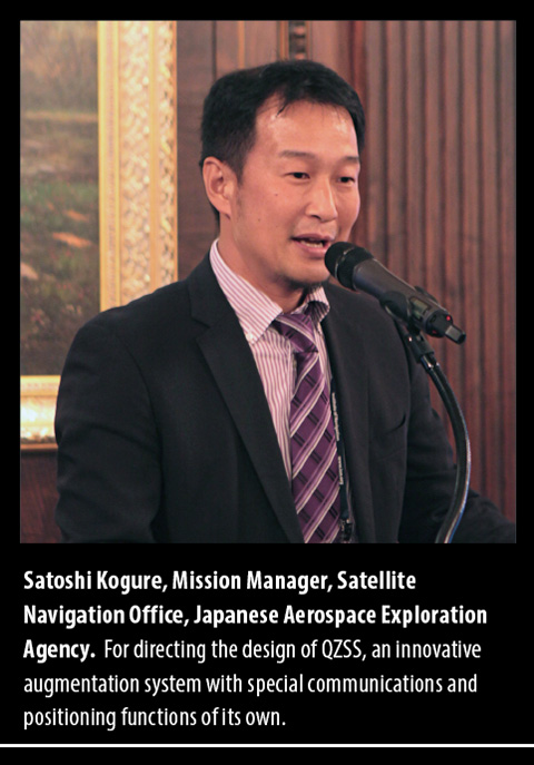 It is my great honor to receive this GPS World Leadership Award 2013 on behalf of my team. I’d like to express my gratitude to my family, my colleagues, and especially my team members. We jointly developed the first satellite of the Quasi-Zenith Satellite System in Japan.