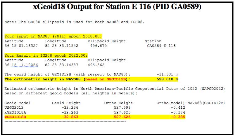 xGeoid18 Output for Station E 116 (PID GA0589)![]() |