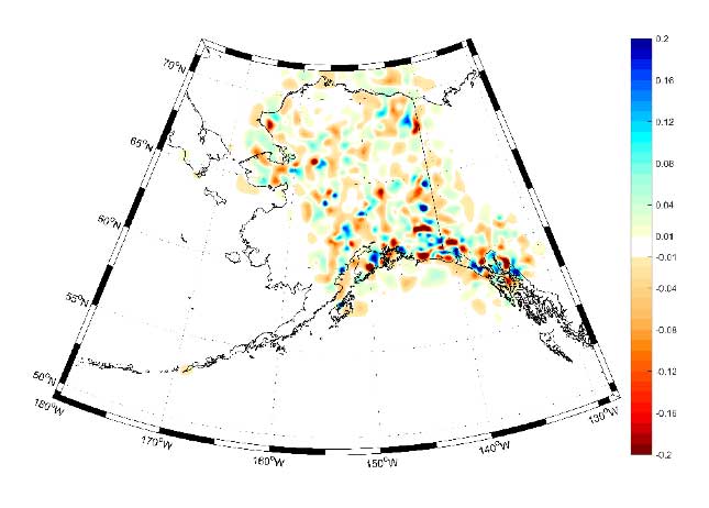 Figure 2 from Technical Details for xGEOID17 ModelsFigure 2. Alaska – Contribution of GRAV-D airborne gravity [units in cm] |