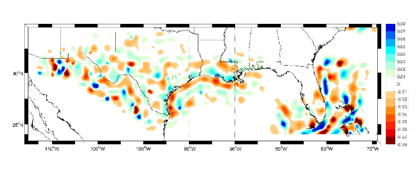 Figure 3 from Technical Details for xGEOID17 ModelsFigure 3. Gulf Coast – Contribution of GRAV-D airborne gravity [units in cm] |
