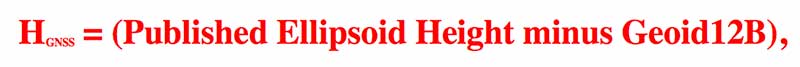 the computed value does not equal the published NAVD 88 leveling-derived orthometric height. In this example, the two heights differ by 2.3 cm. As explained in a previous column, GEOID12B is a hybrid geoid model that is distorted to be consistent with NAVD 88 published heights. It is a model and the documentation states that “The relative accuracy of GEOID12B to NAVD88 is characterized by a misfit of +/-1.7 centimeters nationwide.” The box titled “Excerpt from The NGS Data Sheet for Station E 116 (PID GA0589)” provides the computations and the results.