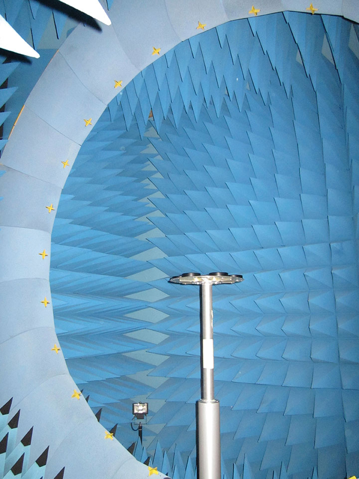 The usual iterative tuning and the optimization process for prototyping have been performed on SATIMO’s arch test range. This test facility indeed significantly reduces the time required to characterize the antenna-under-test (AUT) radiation pattern, in comparison with classical anechoic chamber test facilities.