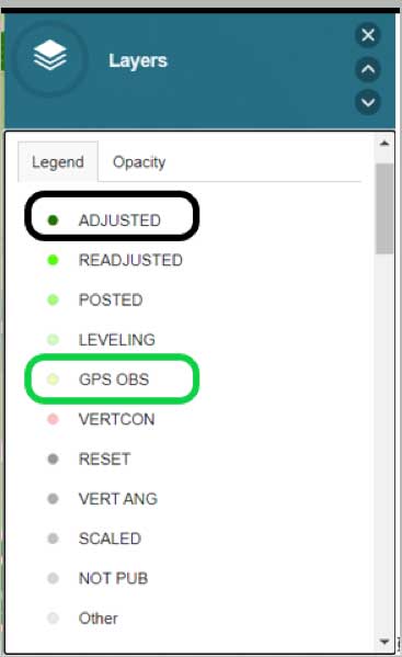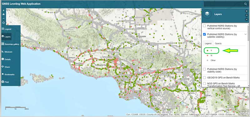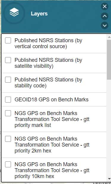 Another great feature of the application is that it has a layer providing the satellite visibility code for published NSRS marks (see the box titled “Published NSRS Stations (by satellite visibility”). Once again, a great feature for field personnel performing reconnaissance.