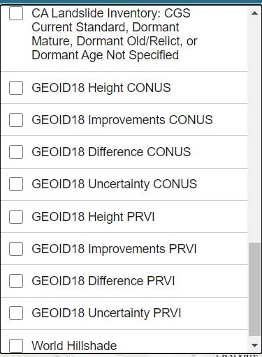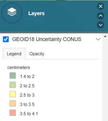 The list all of the layers of the web application are provided in the box titled “GNSS Leveling Web Application Layers.” (Note: After you open up the web application, click on the Layers icon to obtain the list of available layers.)
