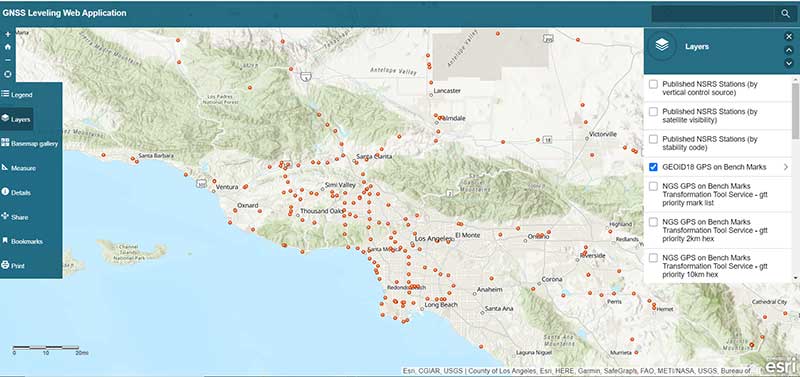 My last column described a new National Geodetic Survey (NGS) webtool for obtaining geodetic information about a passive mark in their database. The column highlighted some features that may be of interest to GNSS users. It provides all of the information about a station in a more user-friendly format. This column highlights an ArcGIS web application that incorporates various California specific datasets and NGS data layers to assist surveyors planning vertical control surveys. The GNSS Leveling Web Application was provided to me by Jay Satalich, chief, Office of Surveys, Caltrans (see box titled “Linkedin Notification from Jay Satalich).