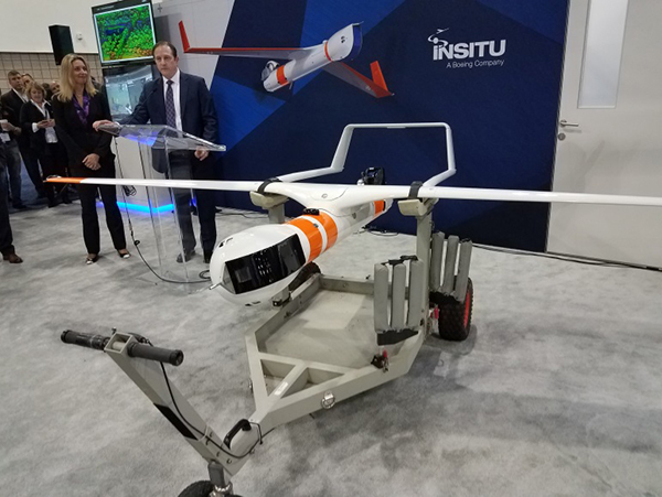 Insitu held a media event at the show to announce its ScanEagle-3 drone system. Esina Alic, the new Insitu CEO, led a team who introduced and then unveiled the new commercial-standard ScanEagle variant.