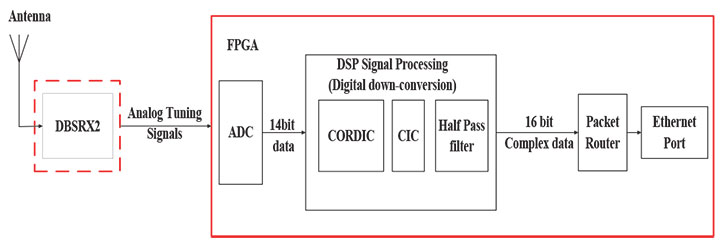 Figure 10. Signal flow in the FPGA of the USRP N210 platform.