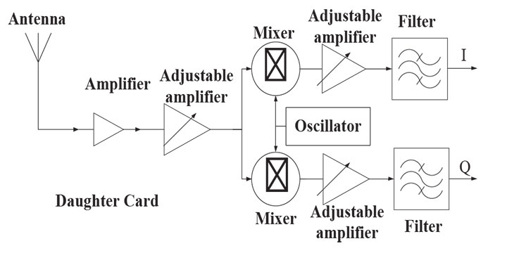 USRP N210 is based on the direct low-IF complex down-conversion receiver architecture that is a combination of the traditional analog complex down-conversion implemented on daughter boards and the digital signal conditioning conducted in the motherboard. Some studies have shown that the low-IF complex down-conversion receiver architecture overcomes some of the well-known issues associated with real down-conversion super heterodyne receiver architecture and direct IF down-conversion receiver architecture, such as high cost, image-folding, DC offset, and I/Q mismatch.