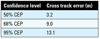 These tests show excellent results in availability, accuracy, stability, and repeatability. The availability is near 100 percent, with the only missing fixes being the first couple of seconds on startup. The position accuracy is sufficient to guide a user to the correct storefront, terminal, or track in a complicated indoor environment. The smooth continuous output can be used for voice guidance applications.