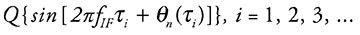 where x n i ) is the ith sample of the signal, τ i is the time of the ith sample, A n (τ i ) is the control-module-commanded amplitude at τ i , d n (τ i ) is the data bit value that applies at τ i , C n (τ it n,k ) is the C/A code chip value that applies at τ i , t n,k is the control-module-commanded start time of the kth C/A code period, Q{•} is a 2-bit quantization function, f IF is the intermediate frequency, θ n (τ i ) is the beat carrier phase at τ i , and f D,n,k is the control-module-commanded Doppler frequency shift at time t n,k . The C/A code function C n (τ) can be further represented as