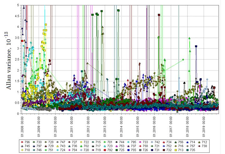 Figure 1. Mature Glonass-M satellites show improved cesium frequency standards performance in terms of daily stability. (Image: Roscosmos)