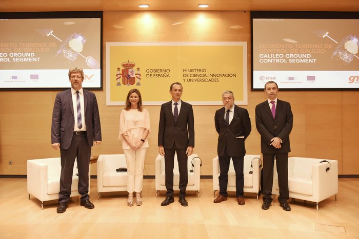 The contract was signed by ESA Director of Navigation Paul Verhoef and Jesús B. Serrano Martínez, CEO of GMV, in a ceremony hosted at Spain’s Ministry of Science, Innovation and Universities in Madrid, in the presence of Spanish Science Minister and former ESA astronaut Pedro Duque.