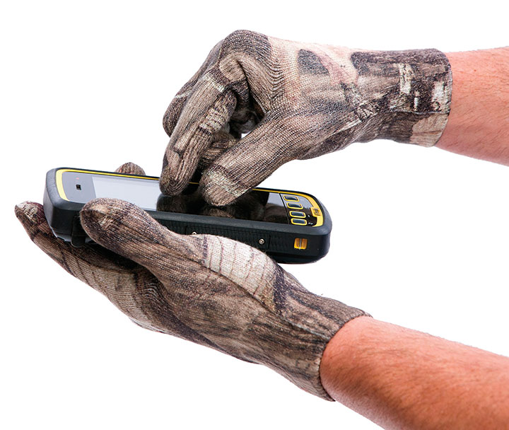 - capacitive gloves that protect workers’ hands while still enabling manipulation of a display screen outdoors,