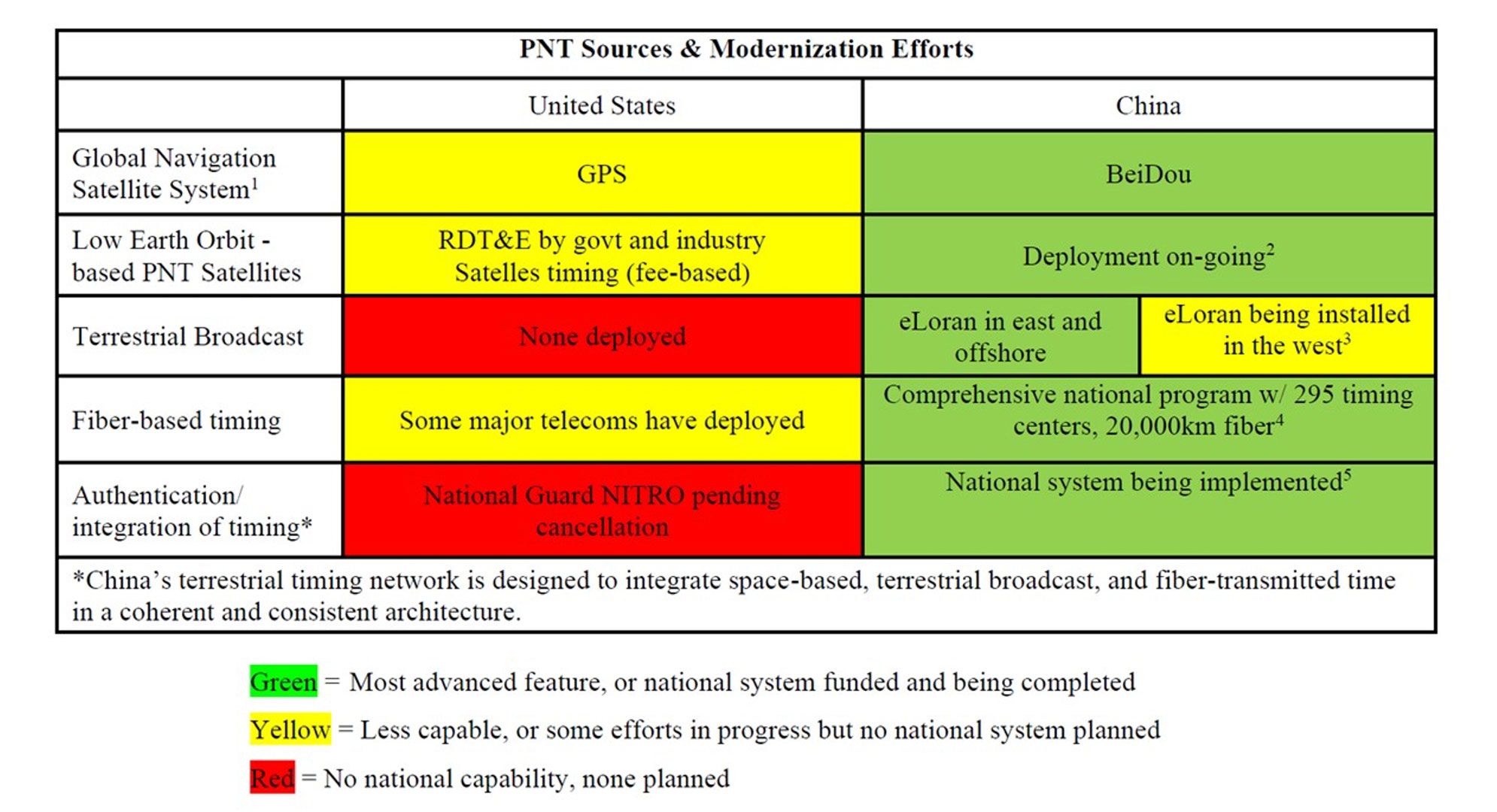 Reinforcing this message, the following table comparing U.S. and Chinese national PNT systems was included in the memo.