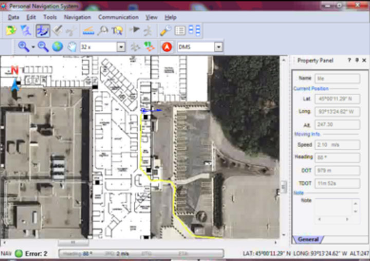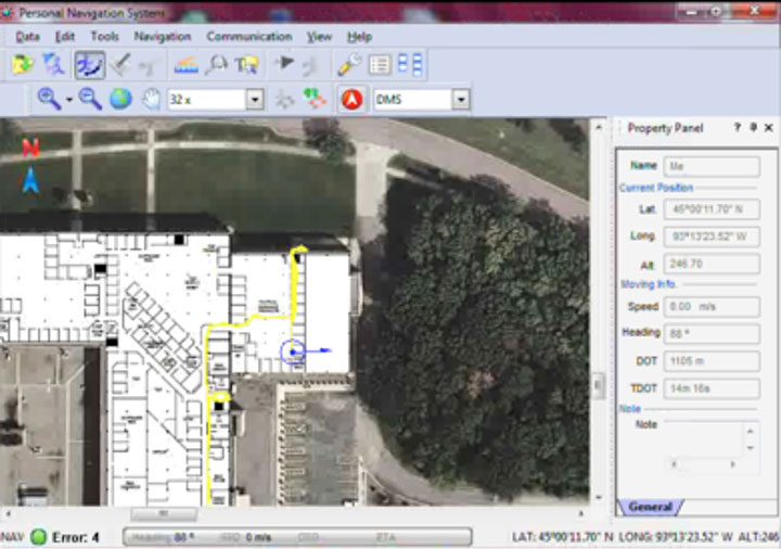 Honeywell’s personal navigation application displays the user’s traveled trajectory in real-time. The application can be adapted to include building floor plans as well as other navigation information.
