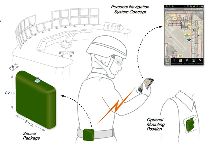 In the field of personal navigation, it is common to find systems that rely on sensors that need infrastructure (for example, Wi-Fi positioning) or sensors that actively emit electro-magnetic radiation (such as Doppler radar). These requirements are major drawbacks for communities such as dismounted soldiers in hostile environments.