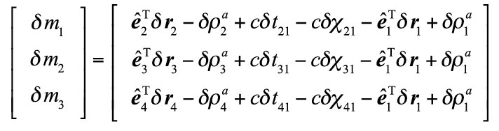 where I-ei is the line of sight vector from the supplicant to the ith satellite. Finally, the vector δm is given by: