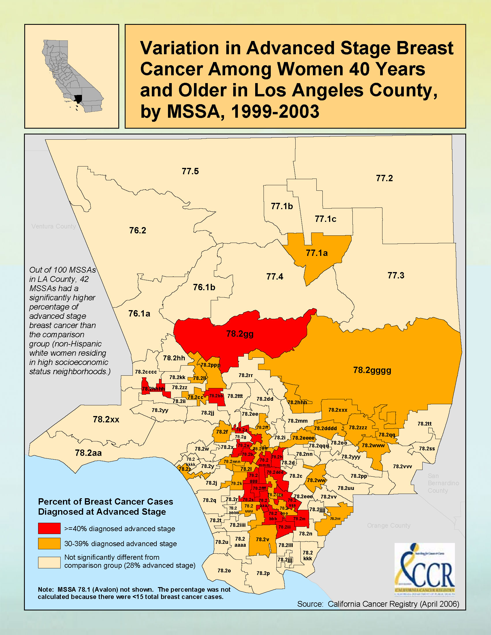 “Figure 2 gives an example of sub-county maps published by California Cancer registries. California is densely populated in many counties, and so the state has defined aggregations of census tracts for their maps. Some of California is in the SEER program; other parts have registries funded by the Centers for Disease Control (CDC).”