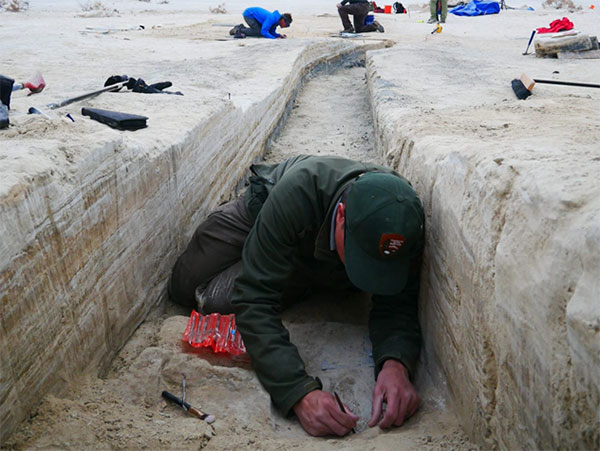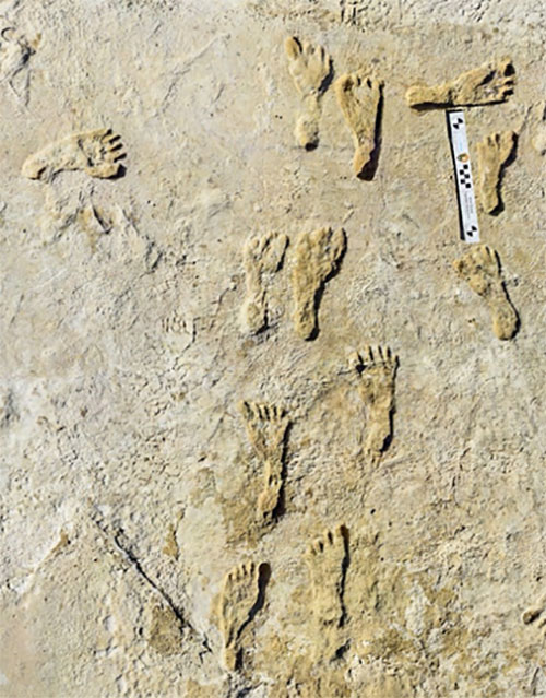A layer 23,000 years old is exposed at nearly two feet down, revealing footprints of a female and a toddler. It tells a story of her mile-long journey through the soft clay mud. Roaming nearby was a giant sloth and a herd of mammoths. This discovery forces science to re-adjust the timeline of humans living on the North American continent, pushing it further back into the Pleistocene era at least 10,000 years.