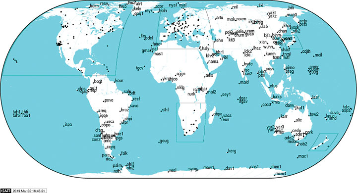 The past 10–15 years has resulted in a significant body of research, and eventually a practical application, with worldwide coverage, of GPS-based ionosphere monitoring. A significant number of International GNSS Service (IGS) permanent GNSS tracking stations (see Figure 2) form a powerful scientific tool capable of near real-time monitoring and detection of various ionospheric anomalies, such as those originating from the underground nuclear explosions (UNEs).