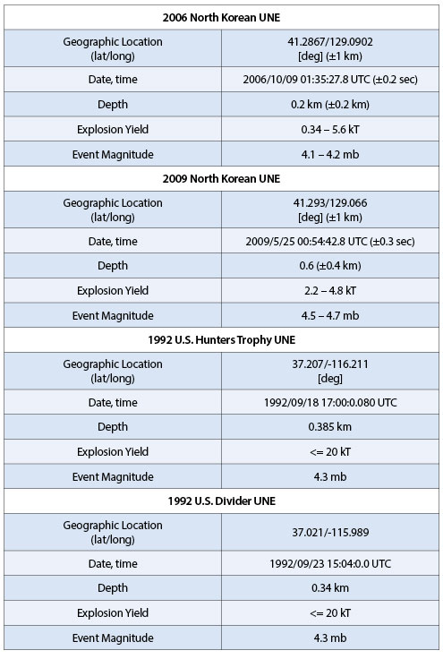 We summarize here the test studies performed by the OSU group in collaboration with Miami University and the U.S. Naval Research Laboratory on detection and discrimination of TIDs resulting from UNEs using the GNSS-based and VLA-based techniques. Table 1 lists the UNE events that have been analyzed to date. As of March 2013, the results of the 2013 North Korean UNE were not fully completed, so they are not included here.