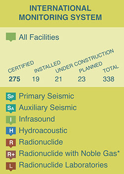 - The International Monitoring System: The IMS includes 337 facilities (85 percent completed to date) worldwide to monitor for signs of any nuclear explosions.