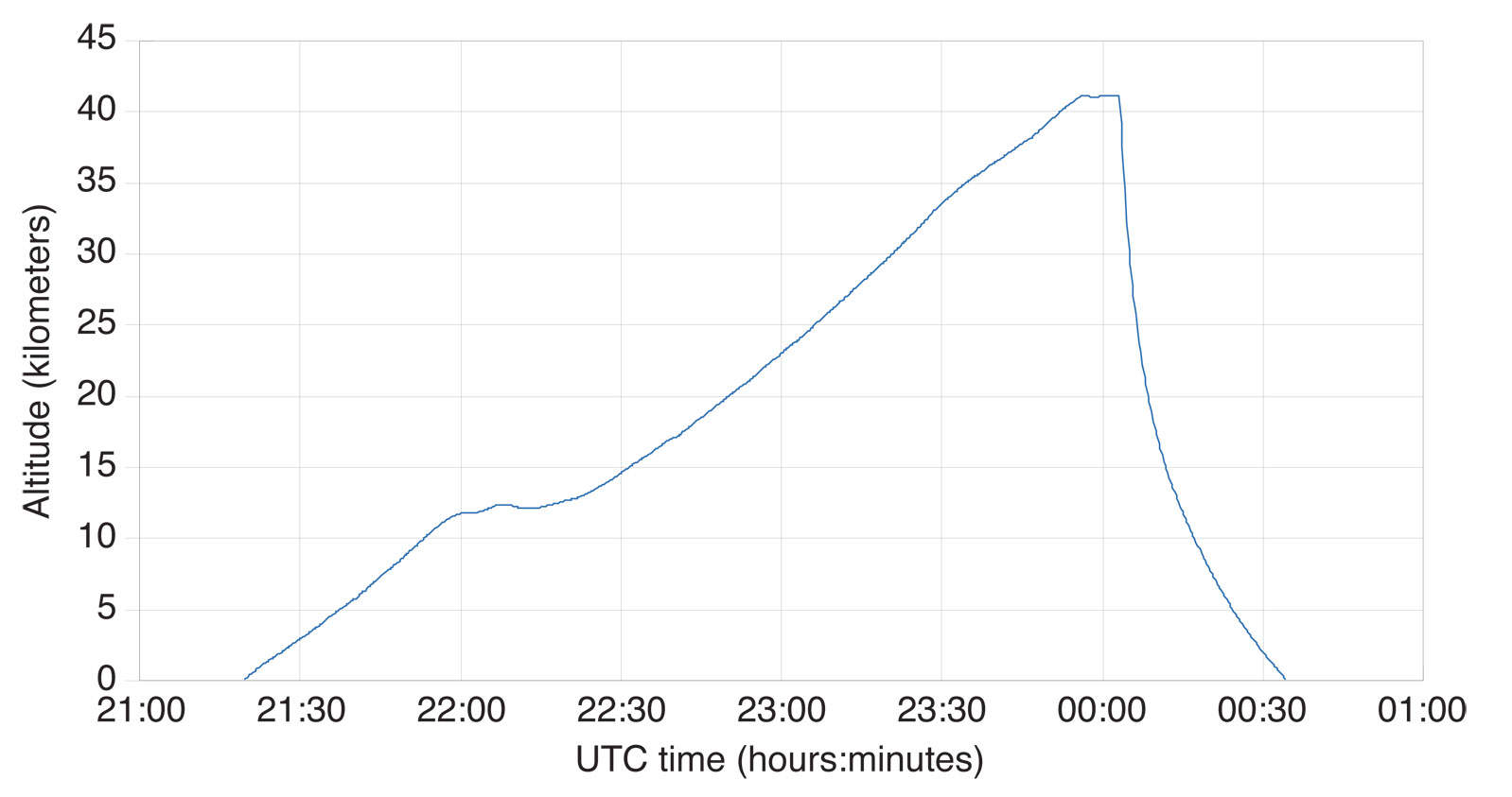 Figure 7B. Full attitude experiment performed in May 2009, flight trajectory (altitude).