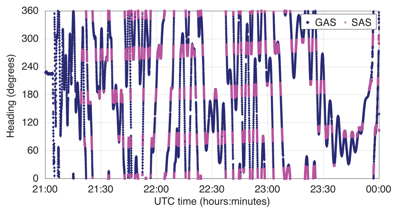 Figure 9B. GAS and SAS results for heading angle during nominal flight.