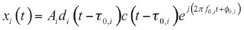 The index i is used to denote quantities relative to the ith satellite. The ranging code ci() is made up of several components including a primary spreading sequence, a secondary code and a sub-carrier.