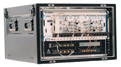 Because one can achieve data rates of 20 MB/s or more with standard PXI controller hard drives (PXI is the open, PC-based platform for test, measurement, and control), one does not need to use an external redundant array of independent disks (RAID) volume to stream GPS signals to disk when using a PXI recording system. In general, data rates exceeding 20 MB/s require the use of an external RAID volume. External RAID systems are capable of storing more than 600 MB/s of data and can be used to support wide bandwidth channels or even multi-channel recording applications. For example, the recording system shown in Figure 5 uses an external RAID volume for high-speed signal recording. This system combines PXI RF signal generators and analyzers with external amplifiers and filter banks for a ready-to-use GNSS record and playback solution.