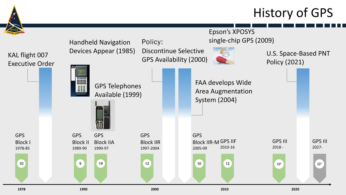 It also marks 40 years since President Ronald Reagan authorized the use of GPS for civil aviation following the downing of Korean Air Lines Flight 007, after it inadvertently entered hostile air space. This year is also GPS’s 30-year anniversary of initial operating capability and the 20-year anniversary of the Federal Aviation Administration (FAA) Wide Area Augmentation System (WAAS), which enhances the accuracy and integrity of GPS services across the entire National Airspace System.
