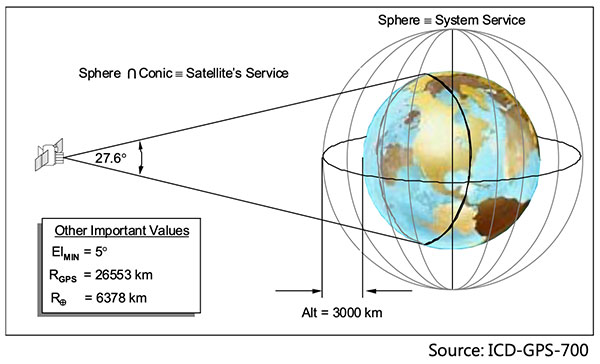 The Earth Terrestrial Service Volume is the near-Earth region up to 3,000 km altitude. (Diagram: NAVCEN/Lockheed Martin)