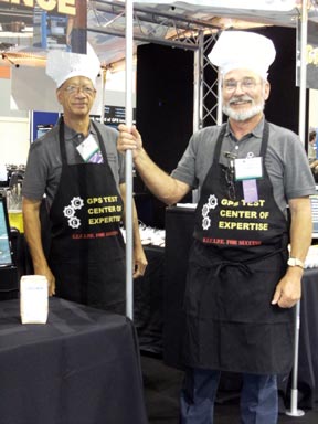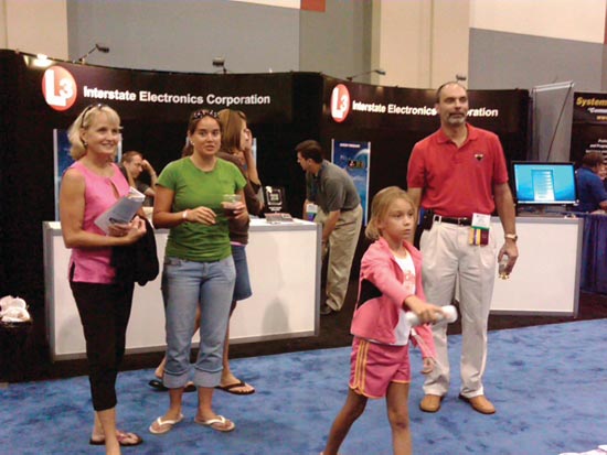 Chefs from U.S. Air Force 746th Test Squadron GPS Test Center of Expertise cook up a winning formula for a booth display, a RECIPE of Resources, Experience, Capability, Innovation, Process, and Efficiency. Visitors were asked to solve an intriguing word puzzle to receive a delicious prize.GPS World’s booth offered a Wii bowling challenge for fun and exciting prizes.A young bowler from Bavaria (above) and ION President Mikel Miller’s family (below) enjoy an evening at the GPS World bowling alley.A visitor to NovAtel’s booth tries his piloting hand in a 3-D attitude solution with NovAtel’s GPS/INS SPAN-CPT product. Used as a controller in the flight simulator, it mimics an actual SPAN application as profiled in the September GPS World.