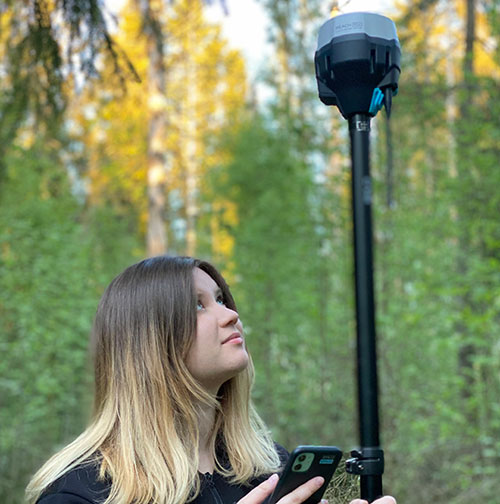 Photo:Svetlana Nikolenko with an Emlid GNSS receiver. (Photo: Emlid)