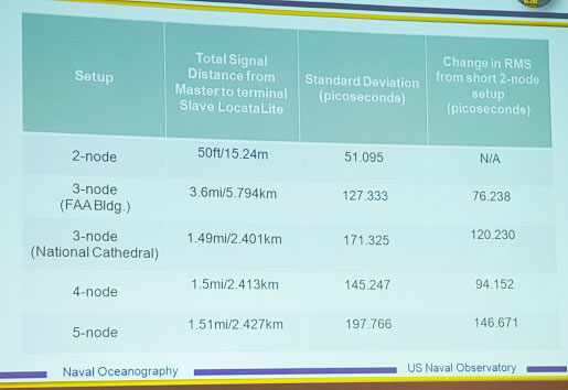 Later, I managed to catch a paper which Locata had recommended, which involved a number of Locata networks used by the U.S. Naval Observatory to demonstrate time and frequency transfer using the USNO Time Standard, with some highly accurate results: picoseconds! This paper forms the basis of GPS World magazine’s October cover story, providing more on these significant time-transfer and synchronization findings.