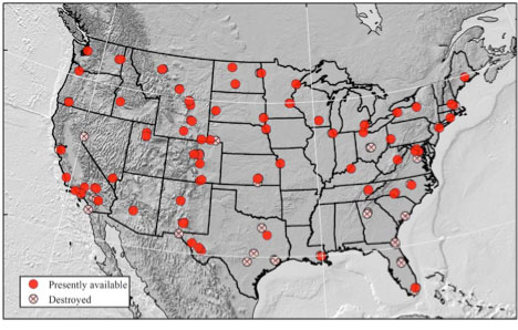 Figure 15: NGSGN Stations. Destroyed stations known as of July 2019. (Source: National Geodetic Survey)