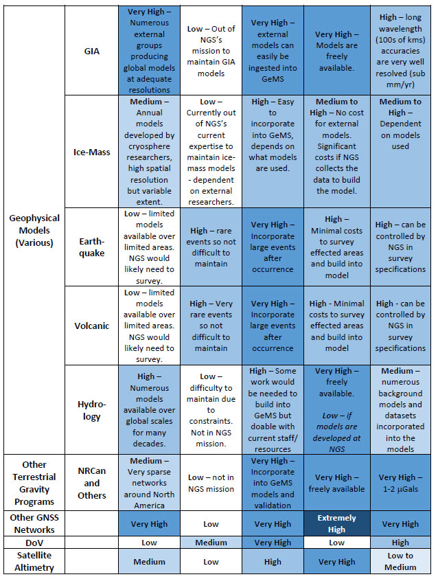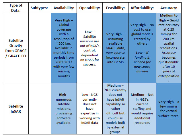 The technical report on NGS’ Geoid Monitoring Service (GeMS) describes geodetic and geophysical techniques that are currently known to NGS and show promise for GeMS (see the box titled “Summary of Known Geoid Monitoring Techniques that are currently outside of NGS’s Expertise). It should be noted that all of these techniques rely on a non-NGS entity to create a product (such as a model or dataset) that NGS can utilize in their products and services. This is nothing new; NGS leverages partnerships for other products such as the GOCO05S satellite gravity model produced by an ESA consortium led by the Technical University of Munich. This model is used by the NGS geoid team in static geoid modeling.