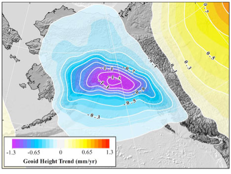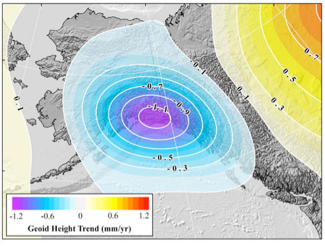 Figure 33 From Technical Report NOS NGS 69: Geoid rate over Alaska from GSFC mascon model [mm/yr] (Source: Figure 33 From Technical Report NOS NGS 69)