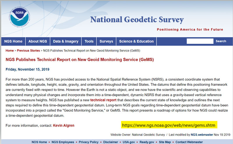 The technical report describes the current state of knowledge and outlines next steps required to define a time-dependent geopotential datum for the Nation. NGS created a project called “The Geoid Monitoring Service,” or simply GeMS, to accomplish their long-term goal of establishing a time-dependent geopotential model.