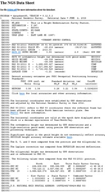 When the user clicks on a station’s icon, another window appears that provides specific information about that station. See Figure 9. If the user clicks on the “More Info” button, the routine retrieves the NGS datasheet from the NGSIDB (see Figure 10). As the NGS datasheet states at the end of the description for station Y 247, the station has been obliterated by a mower, which is why it probably was not used in Geoid18.