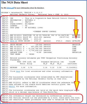I described the NGS’ published height codes in my October 2016 column. In the case of Mitchell 2, there’s no leveling data in NGS’ database in the area surrounding Mitchell 2. There may be leveling projects that have been performed by other agencies such as the USGS but the leveling data have not been processed and loaded into NGS’ database. Users could help by performing GNSS observations on bench marks in the region that are in NGS’ database and/or by performing leveling observations between the GPS on BMs station and the nearest bench mark that has leveling data in NGS’ database.In the example of a large difference between Geoid12B and Geoid18 in Western North Carolina, station Mitchell 2 (PID FB2737) was used in Geoid12B but not used in Geoid18. It wasn’t used in Geoid18 because the NAVD 88 height was not based on an adjustment. According to the description, the leveling tie was performed by a field party that was performing a horizontal survey project (see Figure 13). The field party performed the appropriate leveling procedures but, in this case, the leveling data have not been placed in computer-readable form, so the orthometric height cannot be verified.