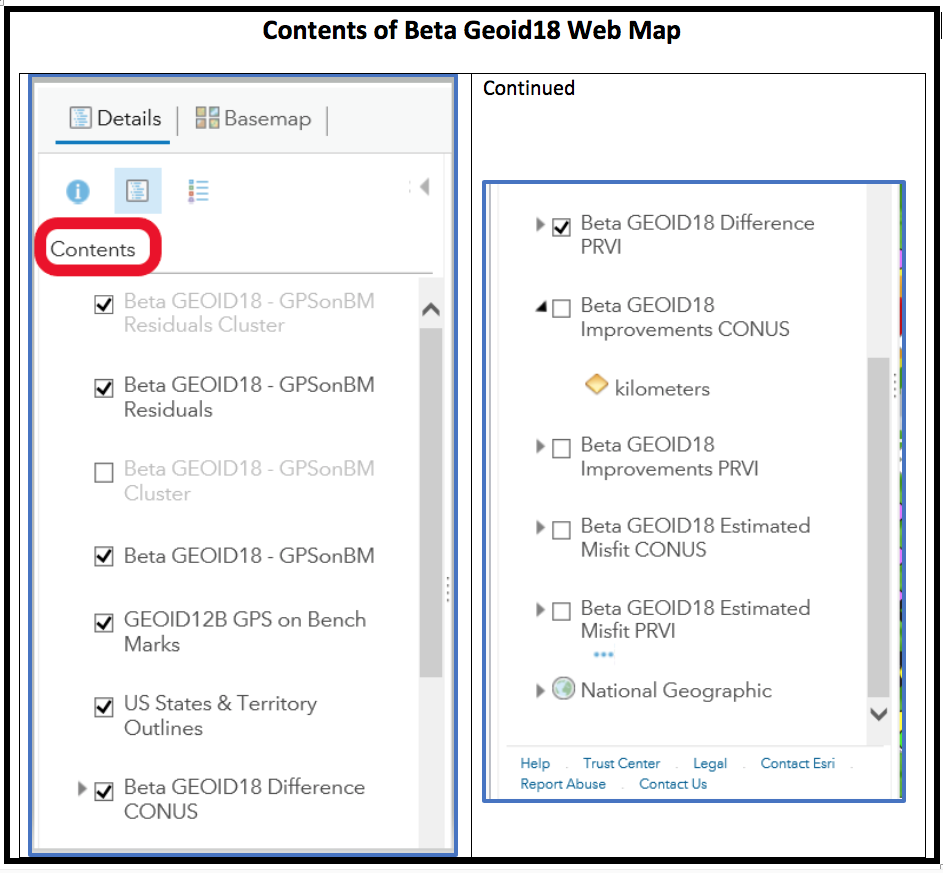 - This is a tile package that displays the difference between GEOID18 and GEOID12B in CONUS. It contains two overlayed raster files, one of which is the estimated error and the other is its hill shade. The data for this web map can be found here.