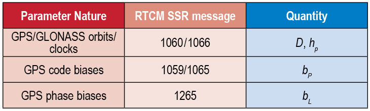 TABLE 1 summarizes the different messages used for PPP-AR in the context of RTCM SSR: