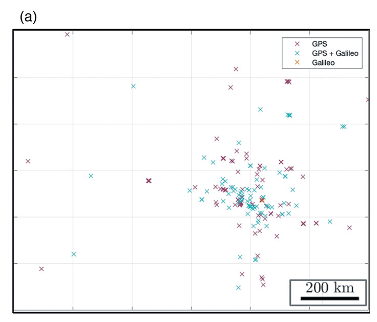 Positioning Consistency Comparison Maps. From the maps in Figure 1, we observe that Galileo has the highest error, followed by GPS, and then the dual-constellation solution. The map also serves as a method to spatially visualize the tails of the error distribution.