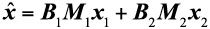 To start, let us define some notation. We assume that the two parallel filters are extended Kalman filters (EKFs) generating estimates of the state vectors x1 and x2. We will denote these estimates Inn-x1 and Inn-x2. The covariances for these estimates are denoted by P1 and P2, respectively. The output of the blending filter is an estimate of the state vector x, which is a subset of x1 and x2. In mathematical terms, this means that we can define two mapping matrices M1 and M2 whose entries are either “1” or “0” and:
