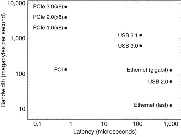 The suitability of a particular bus is often determined by the sustained data throughput rate required by the application and, in some cases, the latency of the bus. An example of a number of interfaces popular in modern SDR front ends is shown in FIGURE 2, illustrating the nominal throughput and the minimum latency of each. In the case of a GNSS SDR, the minimum conceivable throughput required would be hundreds of megabytes per second, but a system could easily use in excess of 200 megabytes per second for multi-frequency, high-bit-depth data.