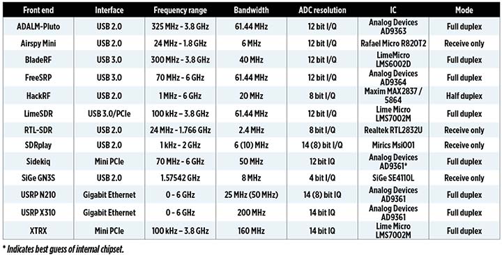 A software-defined radio for GNSS benefits greatly from being flanked in the RF spectrum on both sides by signals that are of interest to the civilian population. Applications such as Digital Video Broadcasting — Terrestrial (DVB-T) and Digital Video Broadcasting — Satellite Second Generation (DVB-S2) receivers have resulted in the availability of a wide range of low-cost RF ICs that are tunable to GNSS frequencies (typically spanning from 900 MHz to 2.1 GHz), which, along with dedicated GPS ICs, were at the heart of early GNSS SDR front ends. Later developments in ICs designed around the 2/3/4G mobile communications standards brought another generation of ICs, bringing higher instantaneous bandwidth, higher ADC resolution and MIMO, and re-transmit capability. With the increase in popularity of the software-defined radio for cognitive radio, Wi-Fi, 3G and Long-Term Evolution or LTE, and enjoying the benefits of a crowdfunding movement, a wide range of front-end peripherals quickly appeared. Many of these front ends are compatible with GNSS, offering significantly increased performance relative to their predecessors. A selection of some GNSS-compatible SDR peripherals (both new and old) is shown in TABLE 1.