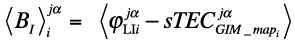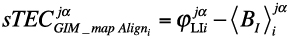 Then, in order to compute the corresponding BI term for each satellite-receiver continuous arc, the sTEC prediction of the GIM (sTECGIM_map) is computed for each satellite ionospheric pierce point, and then the average is computed as follows: