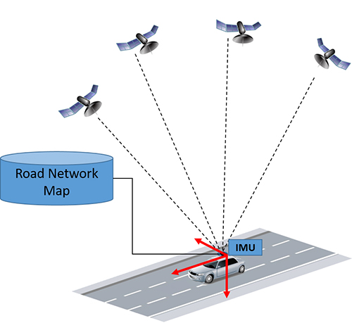 The work includes a sensor-fusion engine that is developed to integrate GPS and IMU using a loosely coupled extended Kalman filter (EKF). Then, a two-stage map-matching algorithm using a Hidden-Markov-Model (HMM) and a least-squares (LS) regression is developed.