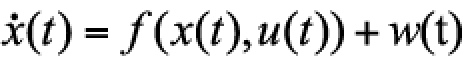 where f(.) is a nonlinear dynamic model, w(t) is a stochastic system noise vector, u(t) is a control signal vector that triggers the transition from current state to a future state, y(t) is external measurements vector (observables), h(.) is a nonlinear measurement model and v(t) is a stochastic measurement noise vector. Using first-order Taylor series approximation, (1) and (2) can be linearized as follows: